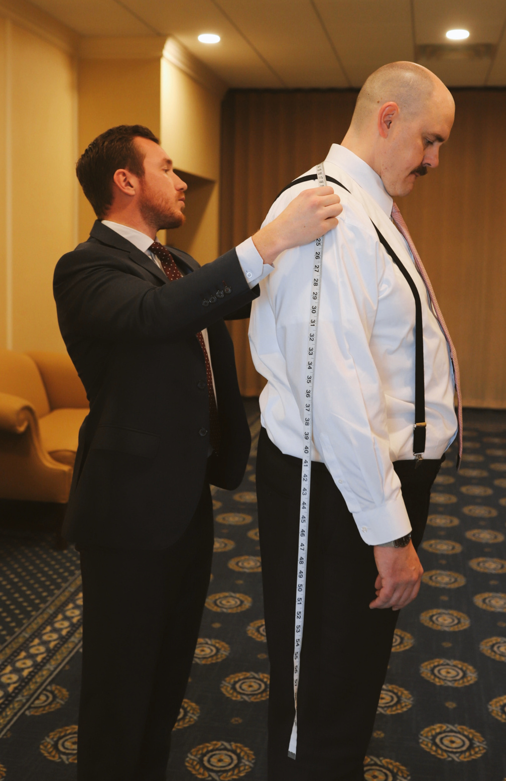 We meet and take your measurements, select your fabrics and customizations for each item you'd like to have made.